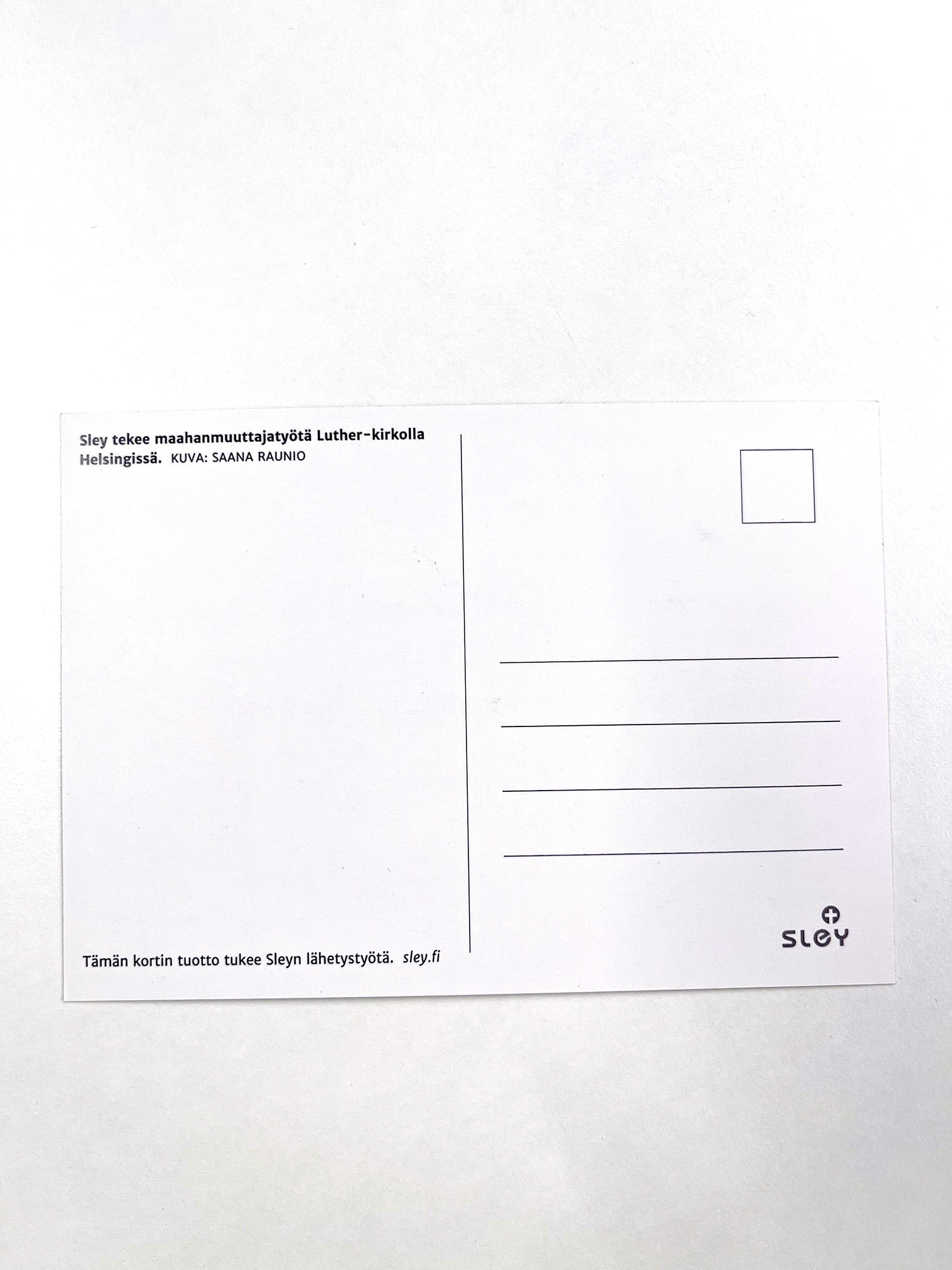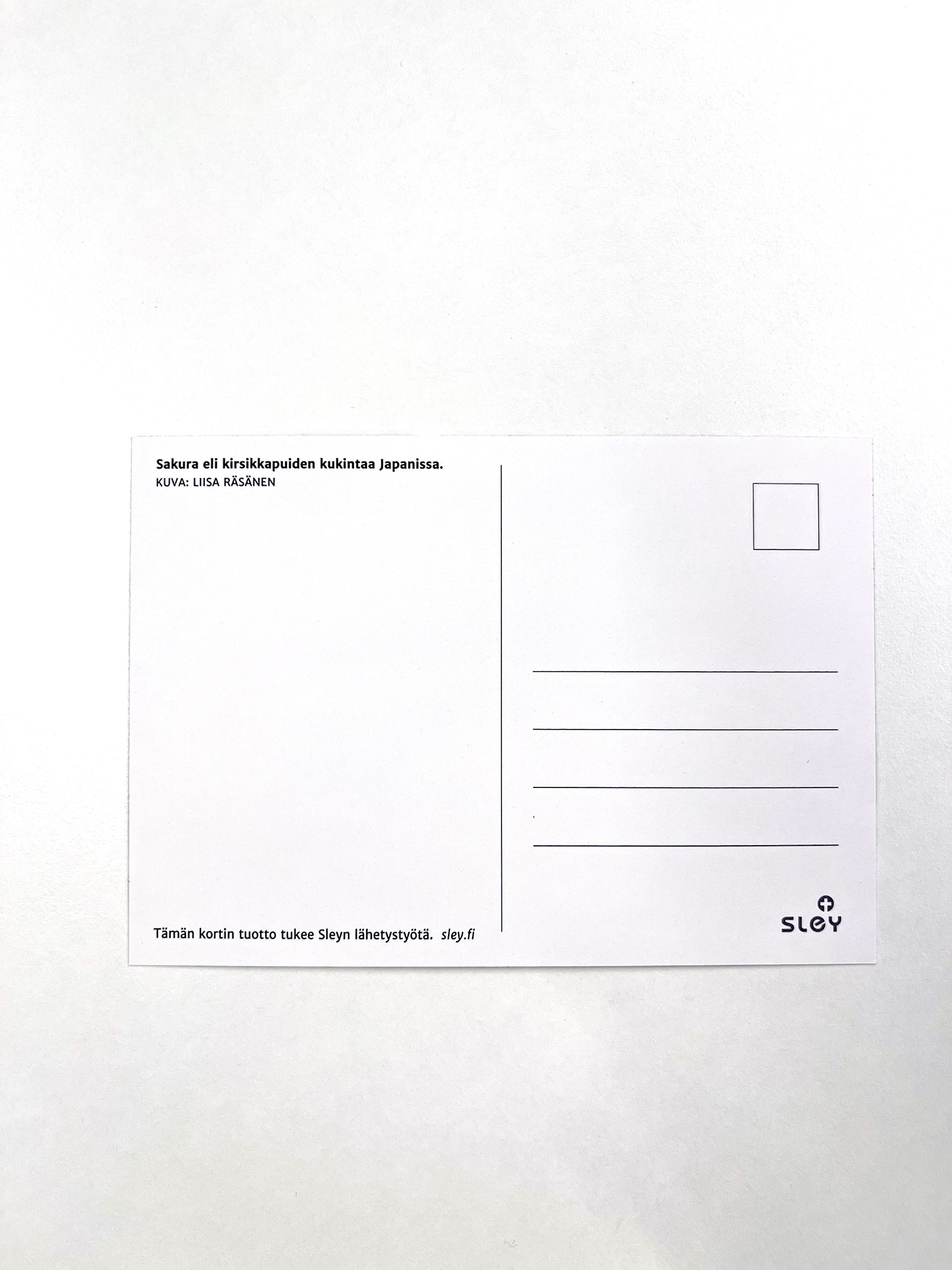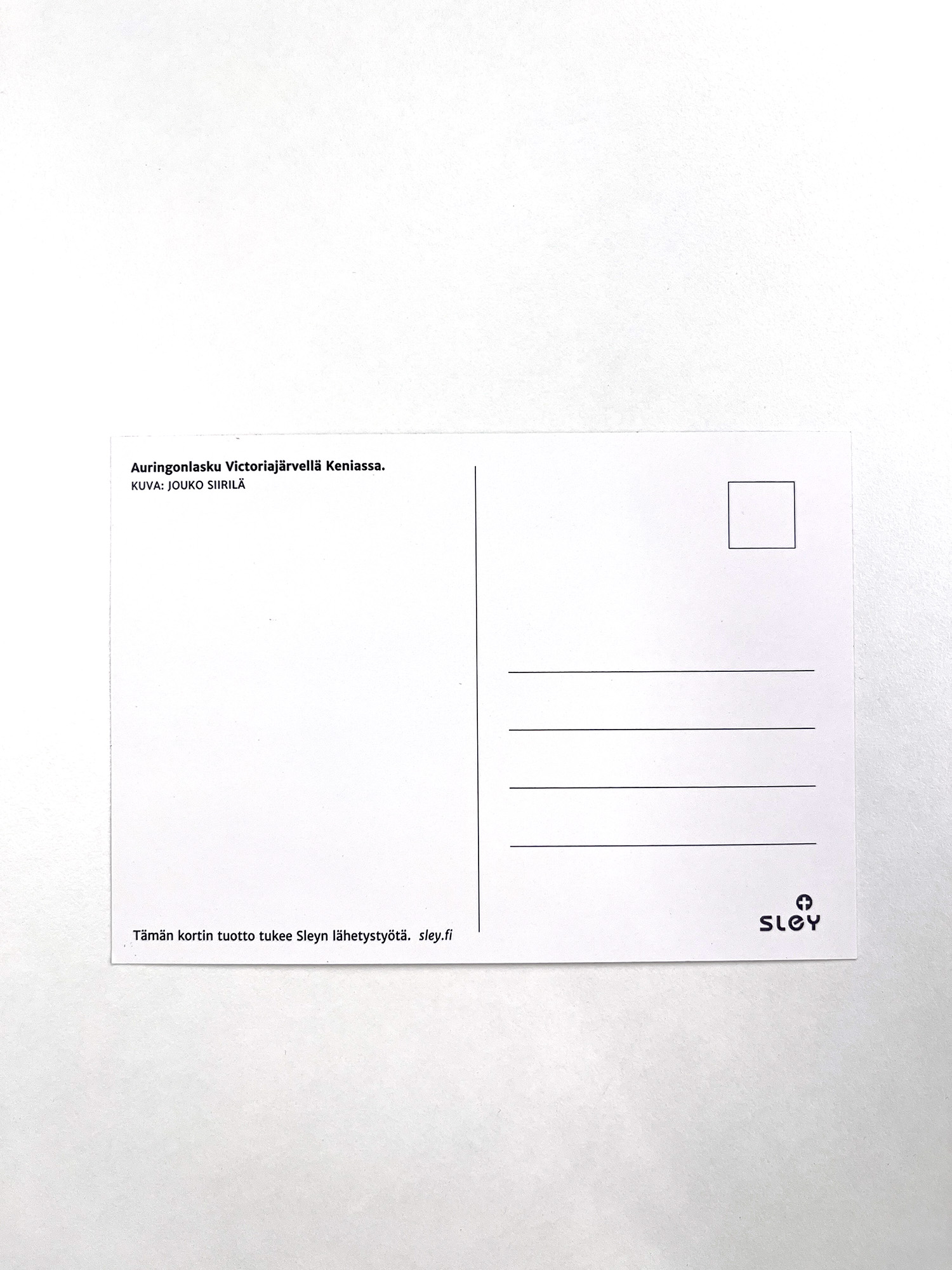 Osta nyt upea postikorttisarja Sleyn lähetystyön hyväksi. Kaikki korttien kuvat on Sleyn työntekijöiden ottamia ympäri maailmaa. Kuva-aiheet korteissa ovat: kirsikankukkia Japanissa, kiinanruusu Ugandassa, Helsingin Luther-kirkon alttarikrusifiksi, virolaisen kirkon kattokruunu ja Viktorianjärvi. Kuvat ovat ottaneet Jouko Siirilä, Saana Raunio, Kirsi Vimpari ja Liisa Räsänen. Kortit on painettu Suomessa Pohjanmaalla. Postikorttien tuotto tukee Sleyn lähetystyötä.
